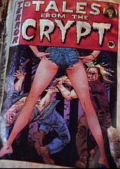 When they hear a police car pull up, Janice throws a glass of milk at Tex, rips her dress and runs outside screaming. The cop naturally thinks Tex assaulted her. Not only that, with the lights on, we can see Tex standing right beside Aunt Mae who has been pushed down the stairs and killed. Doesn’t look good for Tex.
