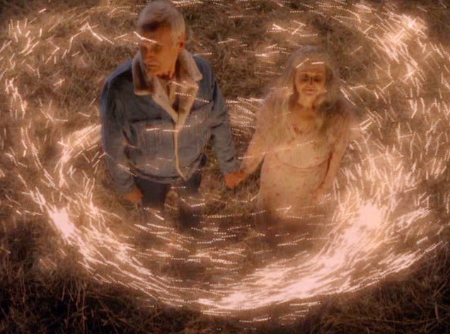 Her mother describes how 50 years ago, she and and the other three dead women went on a picnic at the old Anderson Farm. They encountered a naked golden alien — the last of her race — who impregnated each of them, or at least supplied them with an egg that took 50 years to mature. The alien then left a rock in the middle of the field which would make them young and fertile again 50 years in the future. Luckily Anderson decided not to plow that field or build condos on it for 50 years.